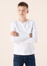 Puuvillane Tommy Hilfiger T-särk on pehme ja nahasõbralik ning ideaalne igapäevaseks kandmiseks nii kodus kui koolis! Pikkade varrukatega särgil on ümar kaelus ja mugav sirge lõige. Vasakul rinnal on minimalistlik tikitud brändi logo, sama logo on ka kaelakaare taga tekstiilpaelana. Modelli pikkus on 158 cm ja kannab suurust 152.
