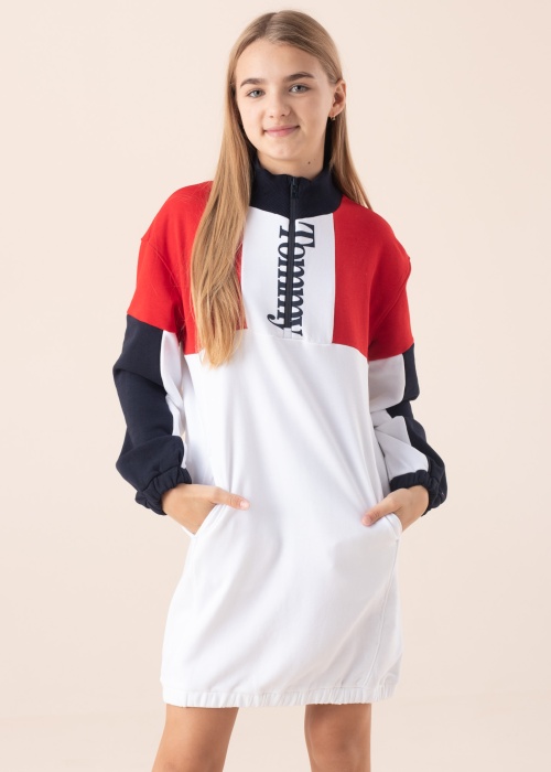 Moodne ja isikupärane Tommy Hilfiger pusakleit on loodud trenditeadlikule kandjale. Eest lukk ning all servas kummikant. Esirinnal on brändi kirjed. Meeldiva puudutusega kangas võimaldab kandmist nautida. Minimalistlik disain avaldab muljet maitseka tagasihoidlikkusega. Mine hooajale vastu trendikalt. Modelli pikkus on 147 cm ning kannab suurust 152.