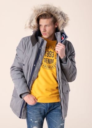 Ääretult soe ja toekas Tommy Hilfiger talveparka Tech, mille pealiskangas vetthülgavast ning tuulekindlast materjalist. Esiküljel kaks mahukat trukkidega taskut, mille all külgedelt avatud taskut. Lisaks rinnal kaks trukkidega taskut, lisaks veel sama kinnitusviisiga õla tasku, mille ülal Tommy Hilfiger silmapaistev lipulogo. Varrukate sisemuses mõnusad soojad soonikud. Kapuuts ning suur ja silmapaistev kunstkarv sellel vajadusel eemaldatav trukkidega. Parka kinnitub esiküljelt lukuga, mida katab trukkidega katteliist, mõnus soe ja kõrge kaelus ning kapuuts, kaitsevad ka kõige koledama talveilma eest. Sisemuses trukiga rinnatasku. Modell pikkusega 193 cm, kannab suurust L. Parka üldpikkus antud suurusel on 85 cm.