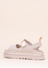 Moodsad UGG sandaalid Goldenglow on ihaldusväärne aksessuaar. Nooruslikud sandaalid on platvormtallaga ja mugavad. Pealispind on valmistatud sünteetikast ja aktsenti lisab brändi logo ninaosal. Sisemuses vooderdab seinu tekstiil ja mugava pehmendusega sisetalda katab sünteetika. Välistald on kergest vahtkummist ning summutab põrutusi. Mine hooajale vastu trendikalt. Sobivad ka laiemale jalale.