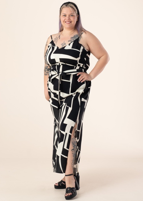Vero Moda Curve kleit Easy on nooruslik ja moodne valik! See suvine õlapaeltega kleit on sirge tegumoega, õhuke ja kaasaliikuv ning silmailu lisab mänglev muster. Keskkohas on kumm , väliskülgedel on lõhikud ja praktilisust lisab seotav vöö. Valmistatud keskkonnasõbralikult- Livaeco by Birla Cellulose on inimtekkeline tselluloosikiud, mis on saadud säästvalt majandatavatest metsadest pärit puidutselluloosist. Modelli pikkus on 167 cm ning kannab suurust 46.