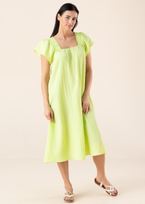 Retrohõnguline Vila kleit Clara Milly sobib suviseks kandmiseks. Raglaanvarrukatega kleit on avara dekolteega ja avara istuvusega. Ilmekust lisab reljeefne muster pealispinnal , praktilisust lisavad avatud taskud küljel ning kaelusel on kumm. Naudi tuju tõstvat värvide energiat! Modelli pikkus on 176 cm ning kannab suurust 36.