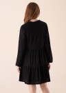 Veetlevalt naiseliku lõikega, igati silmapaistev ning kaunilt laienev Vila kleit Kawa on suisa suurepärane argiseks kandmiseks kevad- ja sügishooajal. Ümarat kaelaava ilmestab V- kujuline väljalõige, mis annab üldmuljele naiselikku sära. Pealispinda katab efektne, avadega dekoreeritud muster ning käised on efektselt läbikumavad, millele annavad parema hoidvuse otstes olevad elastsed kummid. Ülaosa on kaunilt keha ligi hoidev ning mitmeastmeliselt laienev seelikuosa on kaunilt lendlev. Sisepinda katab siidja puudutusega aluskiht, mis on nahal paitavalt pehme. Modelli pikkus on 174 cm ning kannab suurust S. Üldpikkus on antud suurusel 90 cm.