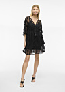 Vila naiste kleit Odette on stiilipuhas ja elegantne valik igaks sündmuseks. Kleit on valmistatud läbikumavast materjalist ning sellel on avar dekoltee ja nahkhiirevarrukad, mis lisavad naiselikku võlu. Ees on nööpkinnitus ning keskkohas seotav pael, mis rõhutab figuuri.