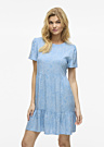Vila naiste kleit Paya on stiilne ja mugav valik suviseks kandmiseks. Kleit on valmistatud LENZING™ ECOVERO™ kiust, mis on saadud sertifitseeritud taastuvatest puiduallikatest, tagades keskkonnasõbraliku tootmisprotsessi ja kõrged keskkonnastandardid. Sellel kleidil on lühikesed varrukad, ümar kaelus ja täpiline muster, mis lisavad naiselikku võlu.