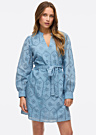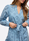 Vila naiste kleit on stiilne ja naiselik valik igaks sündmuseks. Kleit on pikkade varrukatega ning selle pealispinnal on põnev muster, mis lisab erilisust. Keskkohas seotav pael rõhutab figuuri ja lisab kleidile elegantsi.