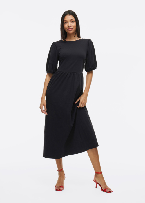 Vila naiste kleit Summera on lihtne ja mugav valik igapäevaseks kandmiseks. Sellel kleidil on ajatu ümara kaelusega disain ning meeldiva puudutusega elastne materjal, mis tagab kandmismugavuse. Kumm varrukaotstes lisab praktilisust ja stiili.