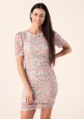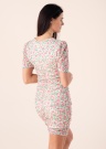 Lühike Vila tuubkleit Volette rõhutab igat kumerust! Roosale lillemustrilisele trikotaažkangale on sissepoole õmmeldud elastsed kummiribad, mis aitavad tootel kaunilt kehasse hoida ning moodustavad pisikesi voldikesi. Lühikestele varrukatele on õla peal olevate voltidega antud mahukust. Kleidil on väike ümar kaelus ja alläär on töödeldud ühekordse palistusega. Modelli pikkus on 176 cm ja kannab suurust S.