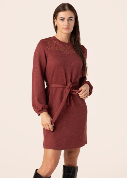 Vila naiste kootud kleit Emmy on stiilne ja elegantne valik igaks juhuks. Kleit on ühevärviline, mis lisab sellele klassikalist ilmet ja muudab selle kergesti kombineeritavaks teiste rõivastega. Ees olev pitsdetail annab kleidile naiselikku võlu ja unikaalsust. Pikad varrukad teevad kleidi sobivaks jahedamateks ilmadeks ning lisavad kandjale mugavust. Modelli pikkus on 176 cm ja kannab suurust S.