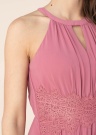 Võluv Vila kleit Milina on vääriline valik pidulikeks puhkudeks. Romantiline halter neck kaelusega kleit on lendlev ning taljesse hoidev. Pilku püüab pits keskkohas , taljesse hoidvuse annab seljaosal paiknev sissetöödeldud kumm ja turjal on haagid. Komplimendid ning tunnustavad pilgud on garanteeritud! Modelli pikkus on 178 cm ning kannab suurust 36.