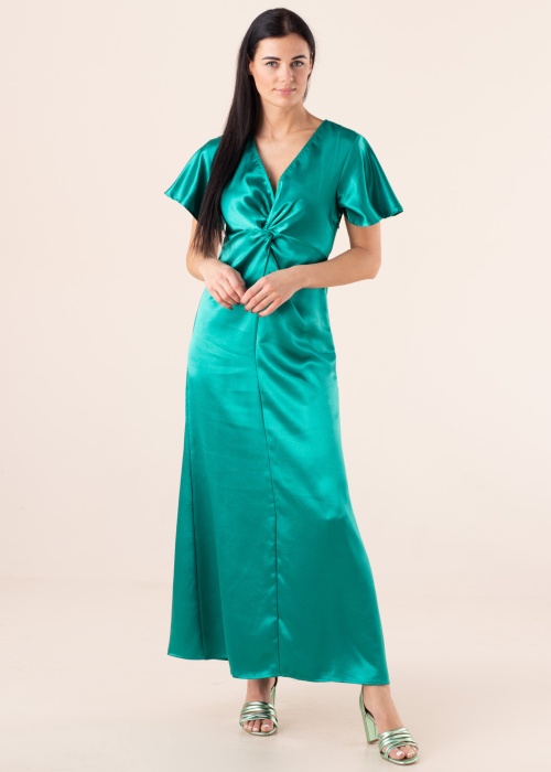 Efektne Vila kleit Sittas eristab sind hallist massist. Naiselik taljesse hoidev kleit on siidine ning v-kaelusega. Rinnal paikneb iludetail , ees on disainõmblus ja vasakul küljel on lukk. Sära ja maailm naeratab Sulle vastu! Modelli pikkus on 176 cm ning kannab suurust 36.