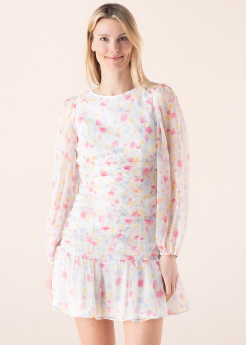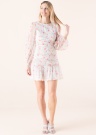 Võluv Vila kleit Sophia on nooruslik ja moodne valik. Naiselik liibuva tegumoega kleit on õhuline ning kerge. Pilku püüavad krooked pealispinnal , all servas on romantiline volang ja seljal on lukk. Sisemuses on aluskleit. Sära ja maailm naeratab Sulle vastu! Modelli pikkus on 177 cm ning kannab suurust 36.