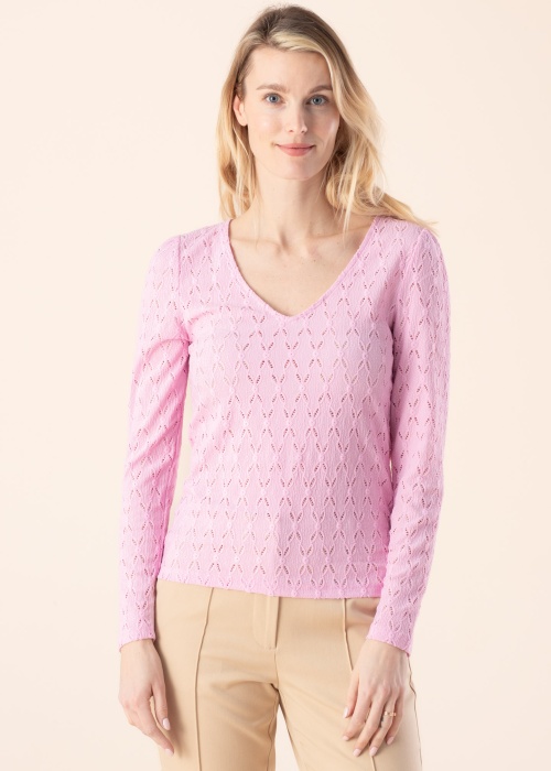 Rõõmsavärviline Vila pluus Zuzan hoolitseb selle eest, et võiksid ennast terve pika päeva hästi tunda. Armas v-kaelusega pluus on taljesse hoidev ja pitsiline. Meeleolu loob šeff pinnadekoor. Modelli pikkus on 177 cm ning kannab suurust S.