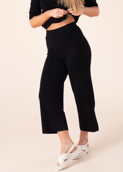Need Vila püksid Comfy vastavad täpselt oma nimele – nii mugavad, et muutuvad otsekohe sinu suureks lemmikuks! Imepehmest kudumimaterjalist avara Culotte lõikega pükste elastne vöökoht sobitub kenasti ümber keha, pakkudes imelist mugavust. Täiusliku elastsusega püksid liiguvad sinu iga sammuga kaasa ning nende kaunis langevus annab rõivale kena hoidvuse. Alumistel äärtel looklevad soonikud, mis annavad rõivale elegantse lihvi. Mugavus on moes! Modelli pikkus on 169 cm ja kannab suurust S.