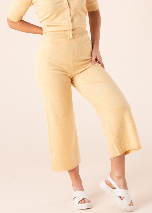 Need Vila püksid Comfy vastavad täpselt oma nimele – nii mugavad, et muutuvad otsekohe sinu suureks lemmikuks! Imepehmest kudumimaterjalist avara Culotte lõikega pükste elastne vöökoht sobitub kenasti ümber keha, pakkudes imelist mugavust. Täiusliku elastsusega püksid liiguvad sinu iga sammuga kaasa ning nende kaunis langevus annab rõivale kena hoidvuse. Alumistel äärtel looklevad soonikud, mis annavad rõivale elegantse lihvi. Mugavus on moes! Modelli pikkus on 169 cm ja kannab suurust S.
