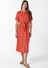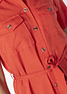 Vila naiste särkkleit on retrohõnguline ja lühikeste varrukatega, ühes värvitoonis. Kleidil on kannaga krae ja hästi langev lõige, ees on nööpkinnitus ning esirinnal tasku. Keskkohas on seotav vöö, mis lisab kleidile elegantsi. Valmistamisel kasutatud Tencel® kiud on toorpuidust saadud tehiskiud, mis on vastupidav ja kulumiskindel kangas ning ühtlasi täielikult biolagunev. Modelli pikkus on 178 cm ja kannab suurust 36.