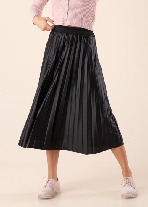 Tõeliselt naiselik midi pikkuses ning A-lõikeline plisseer seelik, mille ülaääres lai ja mugav kumm. Kergelt läikiv pealispind lisab erilisust ning pidulikkust. Modell pikkusega 176 cm, kannab suurust S. Seeliku üldpikkus antud suurusel on 81 cm.