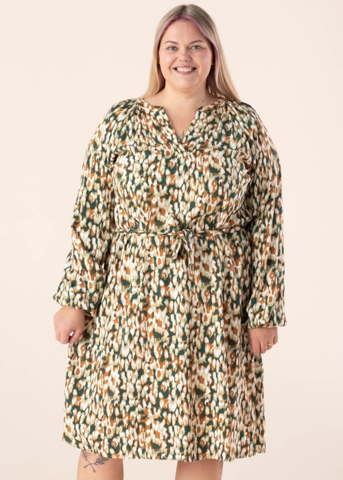 Argine Wasabiconcept kleit Sita sobib igapäevaseks kandmiseks kodus, tööl kui ka puhkehetkel. Kirju raglaanvarrukatega kleit on üle põlve pikkusega, kaasaliikuv ja hästi langev. Keskkohas on seotav vöö , varrukaotstes on kummid ning väliskülgedel lõhikud. Valmistatud LENZING ™ ECOVERO ™ kiust, mis on saadud sertifitseeritud taastuvatest puiduallikatest, kasutades keskkonnasõbralikku tootmisprotsessi ja järgides kõrgeid keskkonnastandardeid. Modelli pikkus on 167 cm ning kannab suurust 46/48.