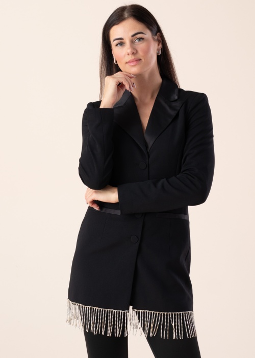 Moodne Y.A.S jakk Jessi sobib õhtusteks kohtumisteks. See hästi langev naiselik jakk on reväärkraega ja taljesse hoidev. Ees on nööpkinnitus ja külgedel avatud põuetaskud ning all servas on dekoratiivne element. Kõnekas lisand, millega täiendada valitud riietust! Modelli pikkus on 176 cm ning kannab suurust S.